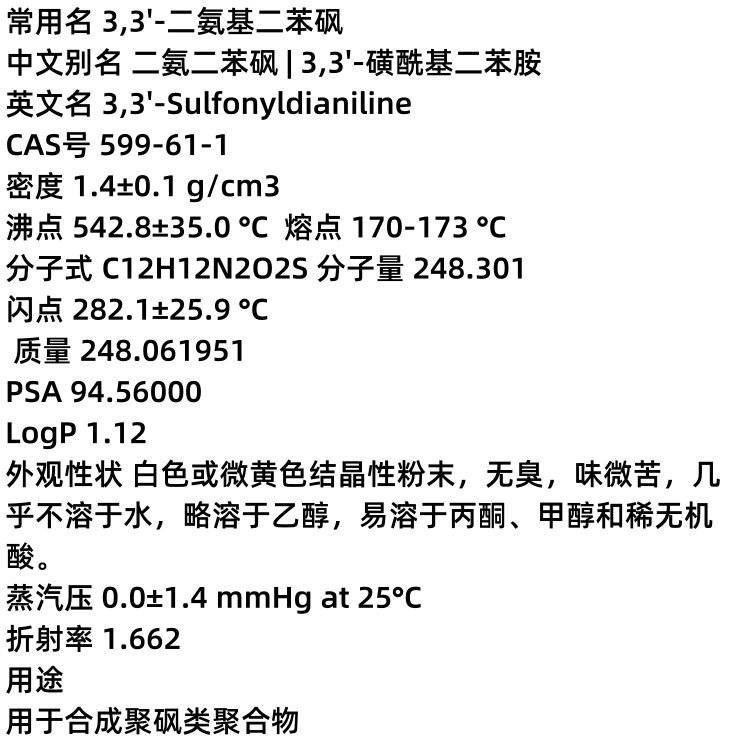 3,3'-二氨基二苯砜 599-61-1 合成聚砜类 结晶粉末